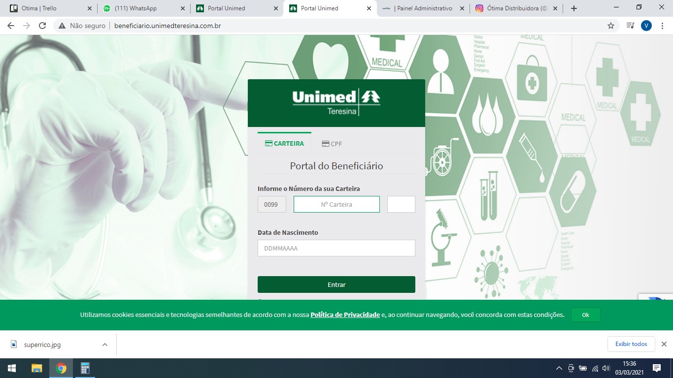 Na Unimed, você acessa o link http://beneficiario.unimedteresina.com.br/ (CLIQUE AQUI) e preenche os dados solicitados (número da carteirinha; data de nascimento).