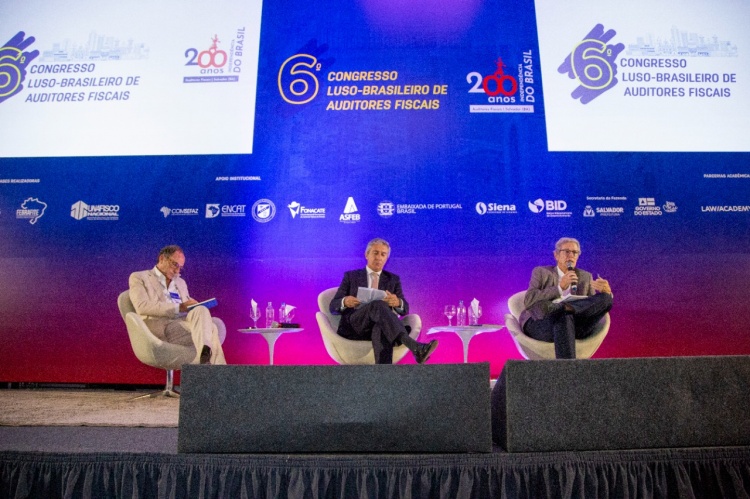 A palestra magna “Os desafios da sociedade contemporânea” marcou o início da programação desta segunda-feira (13) do 6º Congresso Luso-Brasileiro de Auditores Fiscais, que teve abertura no domingo (12) e segue até a próxima quarta-feira (15), em Salvador. Com mediação de Luís Faro Ramos, embaixador de Portugal no Brasil, a palestra contou com participação de dois palestrantes: o ex-ministro dos Negócios Estrangeiros de Portugal e vice-primeiro-ministro responsável pela coordenação econômica, investimento e exportações entre 2011 e 2015, Paulo Portas, e o titular da Cátedra Celso Furtado do Colégio de Altos Estudos da UFRJ, Paulo Nogueira Batista Júnior.