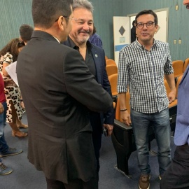 O presidente e o tesoureiro da AAFFEPI, Cláudio Costa e Caetano Mello, respectivamente, cumprimentaram o auditor fiscal e ex-secretário da Fazenda, Raimundo Neto Carvalho e a auditora fiscal Savina Magalhães, aclamados, por unanimidade, pelo colegiado para mais uma gestão como presidente e vice-presidente, respectivamente.