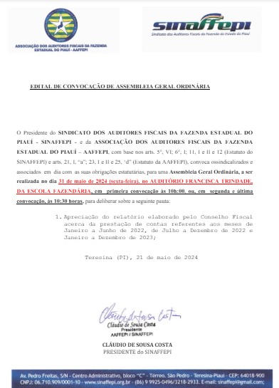 CONVOCAÇÃO DE ASSEMBLEIA GERAL ORDINÁRIA