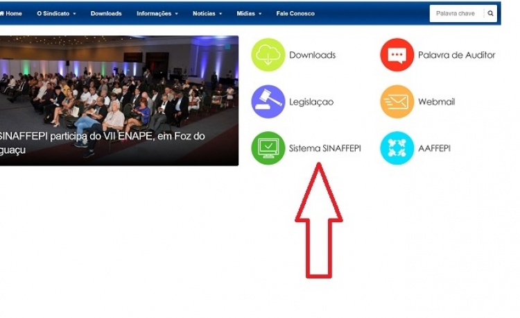 No site sinaffepi.org.br, clique no ícone SISTEMA SINAFFEPI. Lá abrirá uma página que solicitará um login e senha. No primeiro acesso, ambos os campos deverão ser preenchidos com o CPF do auditor. Em seguida, uma nova página será aberta, para que, cada sindicalizado atualize seus dados. Esse é o módulo cadastro, extremamente importante para que as entidades possam manter sempre contato com os seus credenciados.